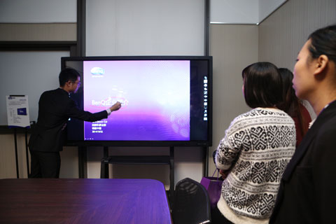 除智慧商用無線投影應用方案以外,明基同時還展出新一代智能商用大屏會議系統,以98英寸巨幕級交互式液晶一體機為載體,非但具備4K級超高清分辨率,并可精準呈現多達10.7億種驚艷色彩,同時它也支持先進的10點紅外觸控功能,讓用戶完全擺脫鼠標或鍵盤等輸入設備,僅需指尖在屏幕上輕輕點觸,即可完成輸入、書寫或其它操控功能,再搭配優秀的商用交互軟件,可實現跨區遠程互動、智能雙向實時互動等多樣化、專業化的應用需求,為商務領域構建多媒體會議系統帶來全新的解決方案。