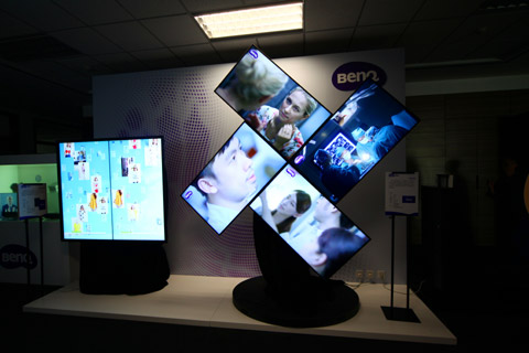 為滿足創意展示應用需求,更好吸引廣大受眾的視線,明基BenQ突破大屏拼接固有模式,成功推出形態更豐富且更有視覺震撼力的異型拼接解決方案。在現場展示中,明基以多臺采用超窄邊設計的SV500工業級LED背光顯示屏,組成了一套造型奇特的多媒體顯示系統。據了解,它們完美支持多角度安裝,甚至還可依據客戶需求,發展出任意造型的異形拼接系統。另外,得益于超卓的品質與可靠性表現,它們均可支持7×24小時不間斷運行,并可通過MDA多屏管理軟件來實現遠程集中管理,再配合信息發布系統,可為用戶實現靈活多變的顯示方案,還可遠程更新顯示內容及播放列表。