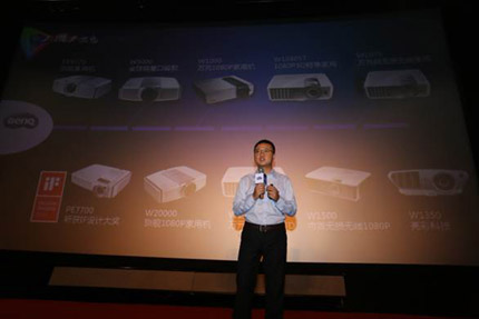 在開場報告中,明基中國投影機事業部總監黃振宇,向與會人士進一步介紹了明基投影機在內地市場的發展現狀,以及完整覆蓋家用、商用、教育、工程各個細分領域,面向各界用戶不斷深化應用創新、價值創新所帶來的一攬子解決方案,其整體化、專業化、智能化與人性化特色,無不給人留下深刻印象。緊接著,本次發布會進入更出色更精彩的第二篇章。大熒幕上,擷取自多部經典影片的視頻集錦,向與會者完美展現了極具視覺沖擊力和精神感染力的震撼色彩,不禁讓人大開眼界、嘆為觀止。