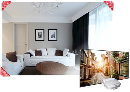 而如果一鍵開(kāi)啟智能超投電視i910,這里立馬成為新年里最受大家鐘愛(ài)的影音生活空間。客廳、餐廳采用全通透設(shè)計(jì),朋友們可以在沙發(fā)上、小吧臺(tái)、餐桌各處聊天并且享受震撼的大屏視覺(jué)體驗(yàn)。由于整個(gè)環(huán)境的采光非常好,陳一開(kāi)始有點(diǎn)擔(dān)心畫(huà)面是否會(huì)不如人意。可是在體驗(yàn)店使用之后,她發(fā)現(xiàn)本身具備3200流明高亮度的i910,再加上一塊擁有特殊光學(xué)鋸齒結(jié)構(gòu)以及抗光圖層的黑柵抗光屏幕,足以在客廳搭建陽(yáng)光影院。抗光屏幕可阻絕93%以上的環(huán)境光干擾,相較普通白幕,對(duì)比度提高10倍,即使在自己家明亮的客廳,也能無(wú)損呈現(xiàn)細(xì)膩畫(huà)質(zhì)和鮮活色彩。
