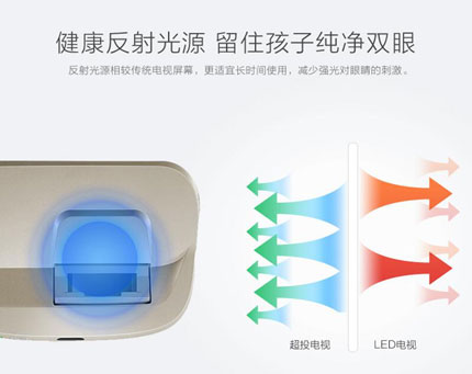 普通液晶電視里面的藍光直射眼球會造成眼睛疲勞,尤其是小孩容易近視,所以很多家庭都已經(jīng)不太敢讓孩子看電視。不過明基智能超投電視i920擁有光源上的優(yōu)勢,光線經(jīng)過屏幕反射后再進入人們的眼睛,會讓眼睛更加舒適!