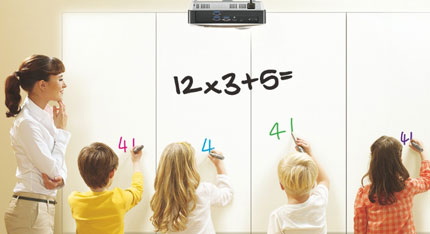 如今短焦投影機與電子白板成為了最佳搭配,受到了越來越多的教育用戶親睞。不僅如此,短焦投影機還打破了實用空間限制,節省了教學空間,讓更多的小空間教室也可以享受到現代化大屏幕教學。明基短焦教育投影機DX807ST采用短焦鏡頭設計,1米即可投射82吋大小的影像,并且完美搭配4:3的互動電子白板,縮短了現代師生之間的互動距離,更為關鍵的是避免了光源直射老師眼睛,貼心呵護每個人的健康。