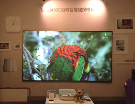 除了在擁有獨立空間的專業視聽室呈現高品質畫面的明基4K家用投影機W11000,還有在客廳為全家帶來影音娛樂的明基超投電視。明基智能超投電視i4020相較于普通液晶電視擁有100吋超大畫面,帶來影院一般的沉浸感。而且,由于反射光源,觀看者不受液晶屏光線直射的威脅,不晃眼,觀看3-4小時也不會覺得眼睛勞累。
