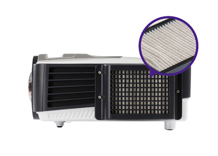 1.5山型褶皺防塵濾網設計,在保證散熱風口面積的情況下,大大提升了空氣與濾網的接觸面積,在保留了散熱能力的前提下將防塵性能最大化,保證了明基投影機內部元器件的正常運行。