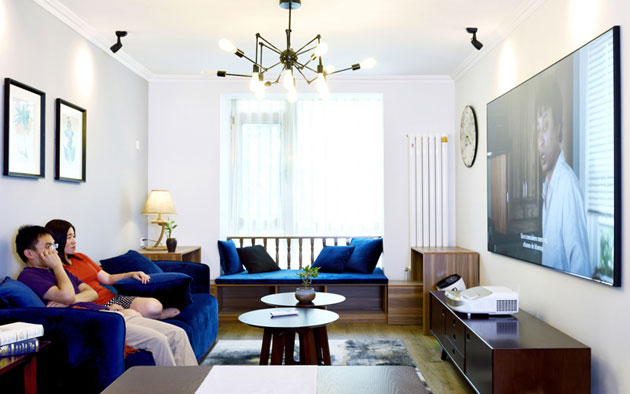 首先,明基智能超投電視i920主機三維僅有389×133.4×431mm,直接放置在電視柜上便能夠讓用戶享受到100吋1080P高清巨幅畫面,在縱身3米左右的客廳都有很不錯的視覺效果。對空間大小和對安裝技術都沒有過多的要求,輕輕松松就能夠創造出屬于自己的私家影院,與她共度甜蜜觀影時光。