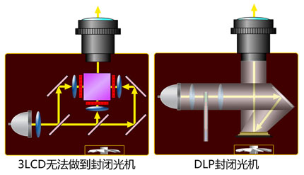 受限于工作原理,3LCD投影機一般采用開放式設計,難免沾染灰塵,而DLP投影機則擁有完整的封閉光機,可以有效阻隔灰塵侵入核心零組件,相對防塵效果更佳。