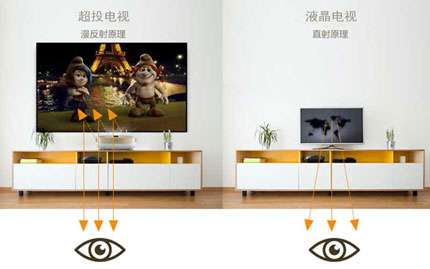 明基i920智能超投電視,不同于普通的液晶電視,減少直射危害,即便是100吋高清大屏,也能為觀看者帶去更為舒適的體驗。因為它的光路是主機將光線打在屏幕上,再反射進入人眼,能夠減少直射光源傷害,更加愛眼。