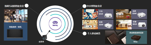 怎樣改變會議空間的現狀?讓未來商務活動釋放更大生產力?無智能,不商務!5月23日,深耕商務投影20年的明基BenQ帶來面向未來的智能商務系列解決方案。主打個人移動應用的智能商務投影機Miss、為各類中小會議空間提供無線互動方案的E310、E500、E560、E610四款智能商務投影機,以及滿足互動協作需求的大尺寸智能商務平板一體機,它們形成了全方位的明基智能商務產品矩陣,旨在為大大小小的會議室帶來一場真正“動起來”的革命。