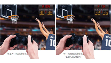 另一方面,明基W1120家用投影機還為喜歡游戲的用戶帶來低延遲的超高刷新性能,升級后的游戲模式中,顯示延遲降低至16.67毫秒,幾乎感覺不到操作的時間差,彎道超車、實況球賽,給你酣暢淋漓的體驗感受!