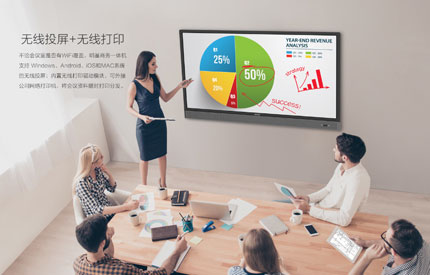 出于提高工作便捷性的考慮,自帶筆記本\平板,甚至是手機開會成為會議主流,五花八門的多媒體設備,在連接會議室投影機時免不了要進行連番拔線接力,或多或少都浪費了一些寶貴的會議時間。無線會議成為趨勢,明基智能商務一體機特別內置無線熱點,不論會議室是否有WIFI覆蓋,都能支持筆記本、手機、平板進行無線投屏,讓信息的分享變得更加簡單而效率,人們得以擁有更多時間專注深度思考。