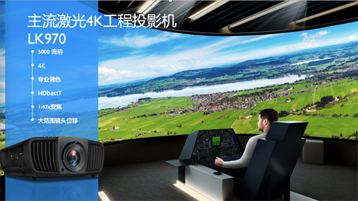 明基激光工程投影機LK970采用DLP真4K影像處理芯片,可顯示830萬像素,并結合純藍激光引擎、真4K