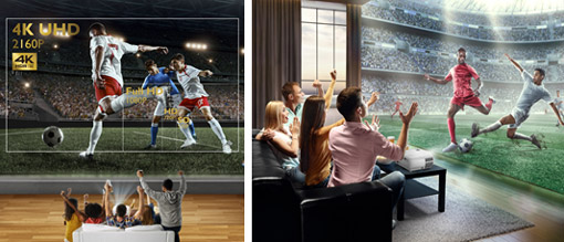 TK800還支持3D功能,畫面最大可投射300英寸,這意味著它能為用戶提供占據一面墻的超大屏幕,坐在沙發上即可體驗到影院級的臨場效果,等身的電影人物或是賽事運動員近在咫尺,挑戰感官尖峰。