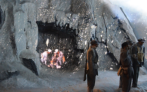 “紅軍過雪山草地”展項呈現了約270度環繞屏幕,觀眾站在其中獲得沉浸感受,12臺明基工程投影機拼融創造超寬幅影像,將雪山草地自然環境之惡劣真實呈現。
