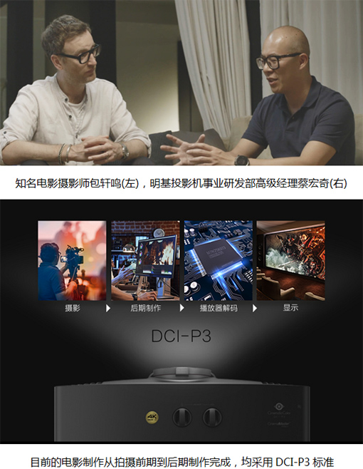 明基投影事業(yè)研發(fā)部高級(jí)經(jīng)理蔡宏奇表示,明基選擇回歸電影創(chuàng)作的源頭,用DCI-P3廣色域還原導(dǎo)演拍攝和后期制作時(shí)的色彩,傳遞給觀眾最真實(shí)的感動(dòng)。