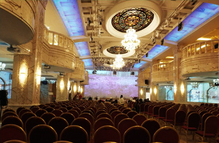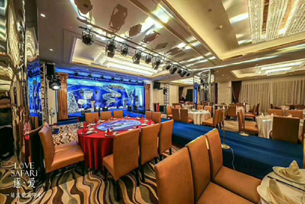位于上海五角場的上海駿萊大酒店,是主打海選菜式的特色酒店,走進金碧輝煌的大廳,讓人有奢華的感覺。酒店本身明亮的燈光效果,在效果營造時,對投影機的亮度和色彩表現提出了要求。