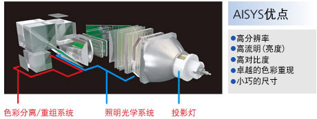 佳能第三代AISYS光學系統,為配合LCOS面板而進一步優化。與第二代相比,第三代光學系統改進了光效率,并采用了新型燈泡光源提高了亮度和分光鏡效率,使第三代AISYS光學系統具有更好的色彩還原性和亮度表現。