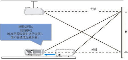 佳能SX800與WUX10都具有10:0鏡頭偏移功能,保持影像下邊緣的位置,當投影機水平放置投射時,這項功能可以幫助用戶更方便地獲得高質量投射影像。因為鏡頭的光軸與投射影像的底邊平行,因此無需調整梯形失真。
