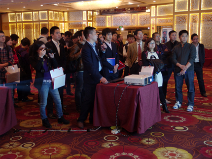 北京力創昕業科技發展有限公司技術人員在現場通過PPT演示與講解,以即時的數據向觀眾展示了兩種顯示技術的投射效果,并通過一副副各種熟悉色調高清晰圖片的對比顯示,觀看實際效果有說服力地顯示了3LCOS投影技術無縫無柵格細膩顯示、真正的色彩亮度、高線性灰階以及佳能投影鏡頭的優勢。現場反響熱烈。