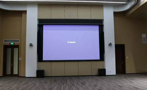 此次設計每個分區設置一套150吋正投影顯示系統、投影機和幕都采用電動方式隱藏安裝在天花吊頂內,各采用1臺色彩亮度高達6000流明的工程投影機Canon