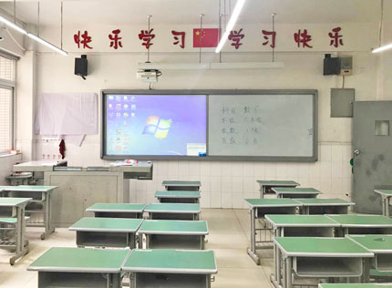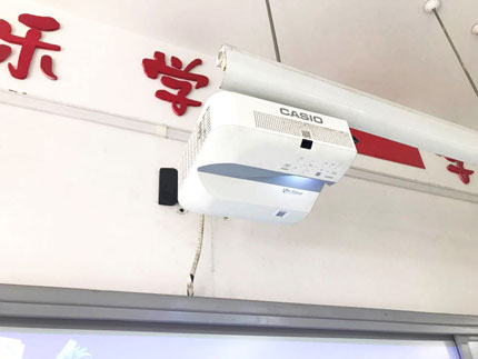 該校所使用的卡西歐XJ-UT255投影機亮度高達3100流明,分辨率為1280×800(WXGA),光源壽命長達20000小時。由于是超短焦投影機,所以可以在距離墻壁很近的位置安裝,13cm的距離即能投影出60英寸的畫面,老師不再擔心身體遮擋而在黑板上留下陰影。具備5秒快速啟動,支持自動梯形校正和光學變焦,安裝和使用都非常便利。