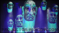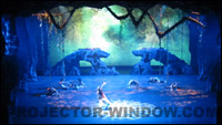20000ANSI流明的高性能投影機:其中三臺側立放置,拼接融合成一個15米*7.5米的畫面投射到背投軟幕上,投影機放置的位置是舞臺的最末端,末端有一個斜坡,投影機放在斜坡后面靠下的位置隱藏安裝。支架高約2米,都是裝在單獨制作的吊籠里,為的是方便調整姿態和便于投影機散熱。