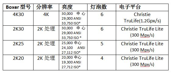 科視Christie®再次獲得技術突破,發布三款全新Boxer產品,擁有2K分辨率和20000、25000、30000中心流明的高亮度。