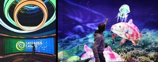 360為瀑布賭場(chǎng)入口打造精美的互動(dòng)視頻墻