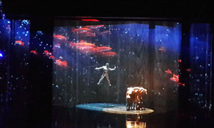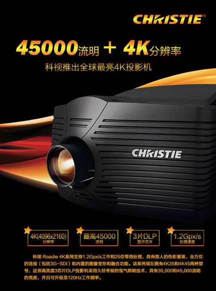 兩臺舞劇的舞臺背景都由全球最亮的投影機(jī)“擔(dān)綱”——45000流明、4K分辨率的科視D4K45投射,它的主要特點(diǎn):