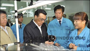 10月9日,李克強在南陽市中光學集團考察光學鏡頭、光學引擎、投影機生產線 |