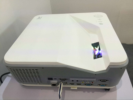 中光學展臺上,最引人矚目的便是中光學COSTAR今年新上市的激光教育投影機,該系列投影機采用激光光源超短焦設計,優質的圖像質量,一流的防塵系統。中光學激光投影機已經完全能夠滿足教育教學的各種投影需求,同時所呈現的明亮、清晰、色彩飽和的畫面得到了在場參觀者的一致認可。