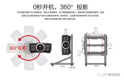 DET激光工程投影機(jī),機(jī)身輕巧,不僅易于搬運(yùn)、安裝。同時(shí),支持全360度投影,側(cè)立投影;采用全密封光學(xué)模塊的抗塵結(jié)構(gòu),抗棉纖維過(guò)濾器抗塵,支持HDBaseT遠(yuǎn)距離傳輸、支持7款可更換鏡頭。