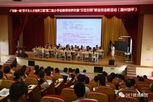 寬敞明亮的學術報告廳中,僅用單臺DET-S85U激光工程投影機,便投影出250寸的大畫面,讓容納數百人的報告廳,每一個角落都能領略臺上的風采。同時,也說明了潮州地區對于教育的重視,導師們將圍繞教育教學改革的熱點和難點問題,特別是學科知識的前沿問題,課堂質量提升的技能等對學員開展教學,培訓形式包括理論面授、跟崗學習等。
