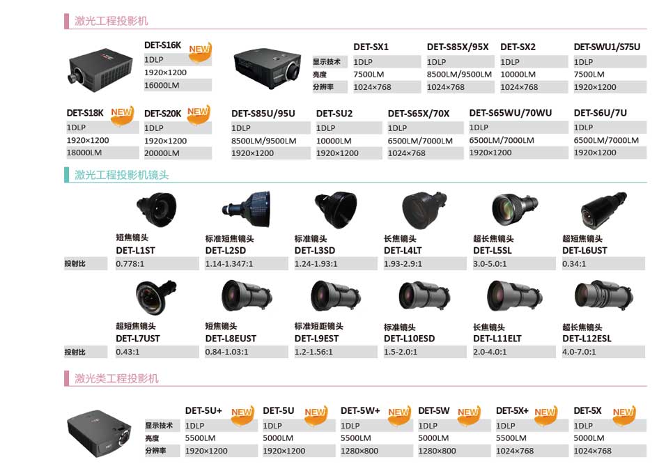 2016年開始,DET德浩開始推出自主研發的一系列激光投影機,從家庭影院到商教,再從商教到10000流明的高亮度工程激光投影機全系列產品。2017年,DET德浩陸續推出12000~20000流明的高亮工程投影機。憑借優異的產品質量、強大的集成能力,目前,DET激光投影產品已經獲得了市場的廣泛認可,在商場、博物館、大型舞臺劇、政府機關等領域成功打造了眾多實力過硬的工程案例,下面我們就來欣賞一下DET