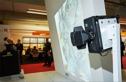 Projection公司在ISE的展位上,新型固態(tài)光源無燈泡投影機進行了重點展示,豎屏模式朝上投影的投影機更加彰顯激光投影機特有的靈活性,吸引眾多觀眾目光。
