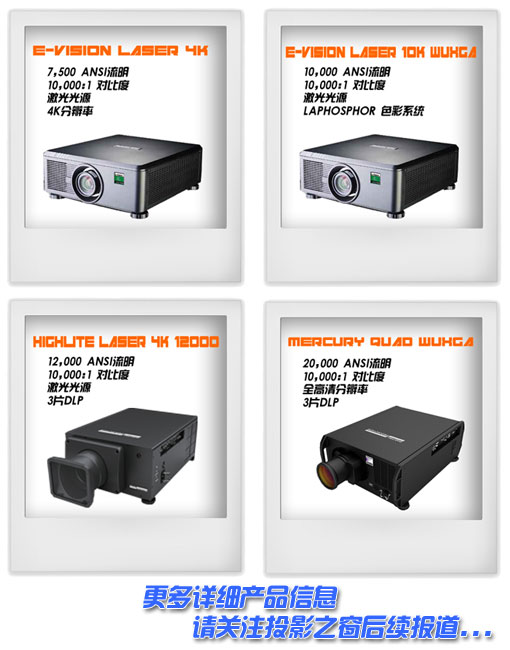 12000和Mercury Quad WUXGA。此次4款新品,采用激光光源,兩款應(yīng)用3片DLP系統(tǒng),消息一出立刻成為業(yè)內(nèi)關(guān)注的焦點(diǎn)。