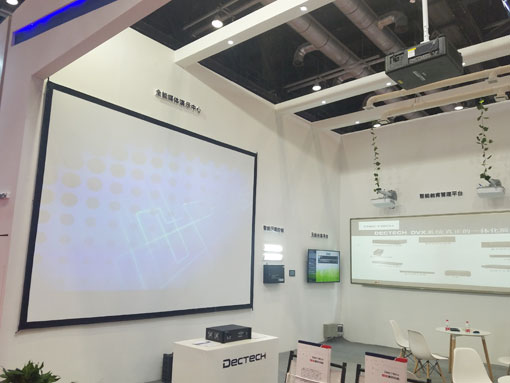 Projection公司攜手攜手合作伙伴隆重出席此次展會,并帶來了旗下LASTER單片激光投影機。該系列投影機具有領先的激光光源,依靠20000小時的光源壽命以及超低的用戶成本等特色,在展會現場配合合作伙伴的教育解決方案,打造出全能媒體演示中心方案,實現了教學過程中多媒體的無縫連接與跨平臺連接。從而打造出更加方便、全面、有效率的課堂教學理念。