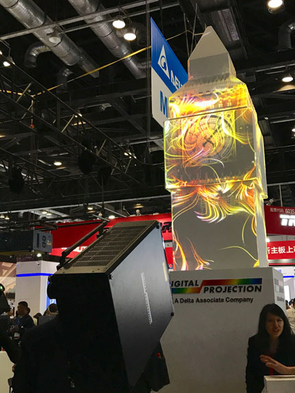 10K提供的豎向投射方案。整個展會,DP全部以激光光源的投影產品亮相,涵蓋了單片DLP和3片DLP,多梯度的亮度選擇和分辨率選擇,為不同場所、不同領域的應用,提供了細分化的產品。真實自然的顯示畫面,帶給觀眾身臨其境的體驗。