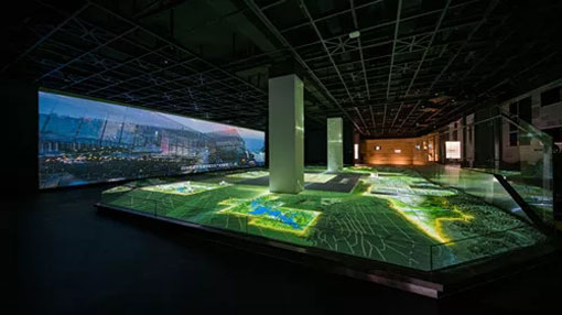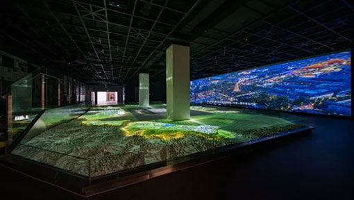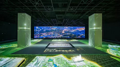 在城市規劃館中,最不可缺少的就是沙盤。沙盤是一個城市的微縮,向觀眾提供一個鳥瞰的角度觀察城市,通覽全局。但傳統的沙盤模型只能在一個時間維度上表現城市,對于一個長達幾年甚至幾十年的城市規劃來說,表現力遠遠不足。數字沙盤可動態地展現了一個城市的全貌,在不同的時間維度上跳躍變化,是闡述一個城市規劃的最佳工具。陜西西安曲江城市規劃展覽館正是利用了數字沙盤向人們打開了了解這座千年古都的全新窗口。