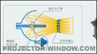 Lamp),通過光線的高效聚集和投射有效地消除了光線的泄露,并減少了光鮮的衍射。這個系統在橢圓形發射鏡的基礎上結合了一個非球面的透鏡和一個半球形的鏡面,。這種設計使得燈泡體積很小,但光功率很高,從而大大提高了燈泡的使用壽命。