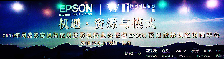 [投影之窗消息] 日前,網庭影音機構家用投影機行業論壇暨愛普生經銷商年會在有"百島之市"勝譽的優美城市--珠海舉行。作為家用投影機行業一年一度的盛事,論壇云集了逾全國二百多家經銷商、主要影音產品廠商、主要行業組織和媒體,共議家用投影機的機遇、資源與模式。現場還展示了EPSON的全部最新家用機產品。 愛普生(中國)有限公司VD部部門經理夏季生、菊池高先生,精工愛普生集團投影機企劃設計部營業部小西正祐先生和產品經理河原崎雅子小姐,產品經理陳旭先生以及網庭影音機構總經理張慶紅先生等出席會議并發言。