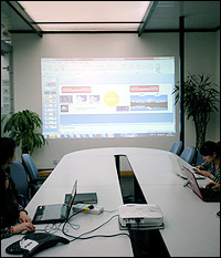 隨著寬屏顯示器的逐步普及,時空視點的絕大多數員工都使用了寬屏筆記本。如此一來,4:3比例的原投影機就已經不再能滿足使用需求,甚至會因投放圖表、文字的變形以及畫面的不完整等缺憾,影響提案效果。因此,在愛普生EB-C260W應用后,寬屏筆記本的投放效果得到了顯著提升。“16:10的寬屏設計,比傳統4:3投影機多顯示30%的內容,觀看的感覺更加舒適。”許國平表示。