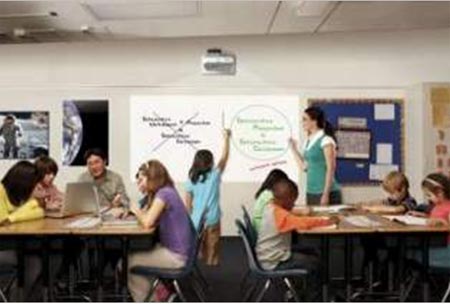 另一方面,愛普生投影機擁有的自動校準功能和無需安裝驅動器功能可以不使用常設電腦進行迅速安裝。空中鼠標功能可以簡單的搜索到數字教材的鏈接。愛普生投影機還可以建立教材數據庫使教師之間共享教材,從而縮短了事先準備和板書的時間,把節省的時間用于個別指導,增加了與學生對話的時間以便提高學生的理解程度。在投影機中設置了上述各種功能使操作更為便利、提高了教學效率,讓課堂教學更加生動精彩。