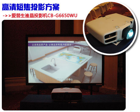 本方案使用愛普生新推出的短焦鏡頭,僅需1.39米就可投影100英寸(16:10)的畫面,投射比為0.64-0.79。可以在更短的距離,投影出大幅畫面,工程安裝不再受到投影距離的局限;