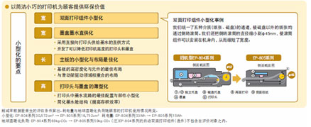 以愛普生EP-805多功能一體機(國內(nèi)型號為XP-801)為例,從舊機型的顧客調(diào)查問卷中發(fā)現(xiàn),由于打印機尺寸原因,顧客無法將打印機放置在理想的位置上。為此,愛普生對顧客家中放置打印機的地方進行了實地調(diào)查和分析,并用紙箱制作了各種簡易模型,反復分析了功能性、操作性、放置性和感觀性評估等項目,通過將雙面打印組件等打印機構件小型化,以及開發(fā)新型打印頭與薄型墨盒等開發(fā)出了與舊系列商品相比體積減小了約40%的新產(chǎn)品。新產(chǎn)品在體積減小的同時,節(jié)能性也提高了,每天的耗電量減少了約54%。由于上述努力,商品生命周期中的地球負荷削減了約14%。