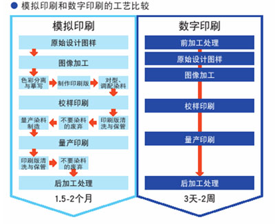 數(shù)字印染印刷與傳統(tǒng)的模擬印染印刷相比,不但縮短了工藝而且不需要制作印刷版,使耗電量和水使用量削減了40-75%,還大量減少了墨水和化學品的使用。數(shù)字印染印刷機所具有的降低環(huán)境負荷及高效印染印刷的特點,促使已步入成熟階段的印染行業(yè)再次走向革新。