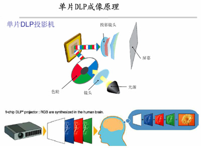 另外,這種差異也來源于投影技術的選擇。目前,市場的投影產品大多使用了DLP投影技術,這種技術也是目前投影市場上功能最豐富的顯示技術之一,這種技術能夠為消費者提供最為清晰明亮的畫質。而為了增加投影機亮度,這種常見的單片DLP投影機中,廠家會在色盤處增加白色色輪來實現白色亮度的增加,所以在這種變化中,色彩顯示的能力會顯著下降。特別是在顯示彩色圖像時,單片式DLP投影機。