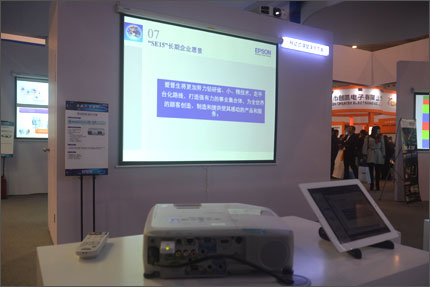 在本次的展會上,愛普生著重為用戶展示了面向于教育應(yīng)用的短焦投影技術(shù)、無線投影技術(shù)、拼接融合投影技術(shù)、交互式投影技術(shù)等主流應(yīng)用,同時配合最新發(fā)布的新產(chǎn)品、新功能,為用戶帶來了諸如多畫面同屏教學(xué)投影、投影與打印機(jī)相互連接使用等特色功能。向用戶傳遞產(chǎn)品、方案與功能的同時,愛普生利用周圍展板向大家展示了3LCD投影技術(shù)的優(yōu)勢、色彩亮度指標(biāo)對于投影顯示產(chǎn)品的重要性以及高效節(jié)能技術(shù)對于教育行業(yè)的意義等等。通過豐其富多彩的展位布局形象的體現(xiàn)出了愛普生對于中國教育行業(yè)的理解與布局,也讓我們看到了其在教學(xué)演示行業(yè)的技術(shù)實(shí)力。 |
