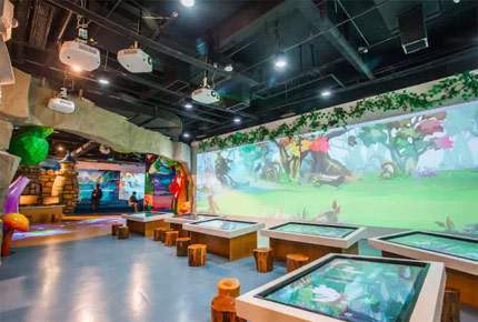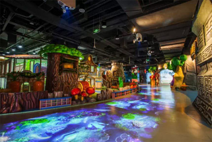 6臺愛普生CB-G6550WU投影機垂直吊裝,利用拼接融合技術將整個娛樂城的地面投射成具有奇妙效果的海底世界。此外,在“魔法森林”中,通過5臺愛普生CB-G6550WU投影機的拼接融合,讓觀者不但身處逼真的叢林之中,還能與林中的卡通人物親密互動。愛普生CB-G6550WU投影機將兒童娛樂設施與投影機的光影效果完美結合,打造出了美輪美奐的夢境樂園。
