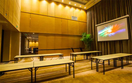 用戶需求主要是兩個方面,一是高清高亮,要適應會議中心燈光環境,首先要求投影機具有較高的亮度和對比度,能夠保證在燈光全開的環境下,從不同角度都能看清每一個畫面的細節。二是散熱性好,穩定性強。酒店會議中心的吊頂非常高,幕布與對面墻壁間隔較短,要將投影機隱藏安裝在墻體中,最大的問題就是如何讓投影機更好散熱以及保證投影機的穩定性。