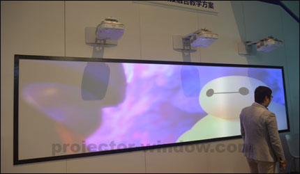 愛普生還將三臺超短焦投影機組成了一套1乘3的超寬屏融合方案,超大的影像面積可以在教室或會議室呈現(xiàn)更多的內(nèi)容。這種方案由于采用了3臺產(chǎn)品,保證了畫面亮度,使得該方案能夠在更多明亮場合下應(yīng)用,實用性大大增強。